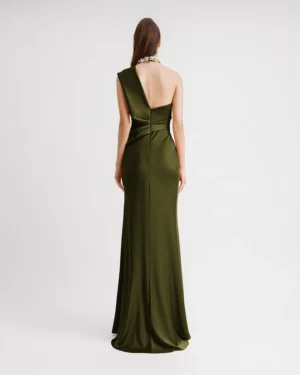 One-Shoulder Draped Olive Dress