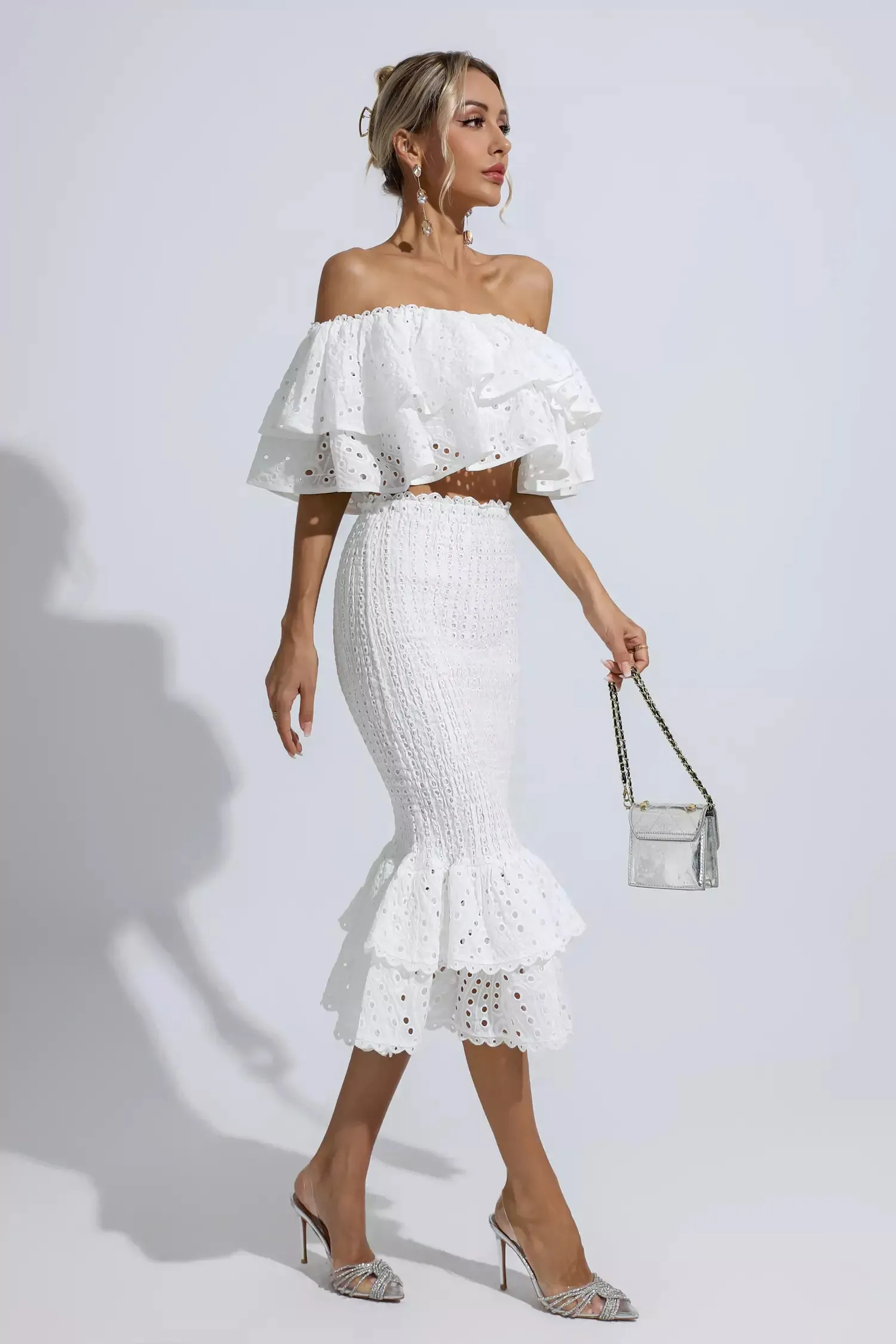 Anaya White Cutout Ruffle Set