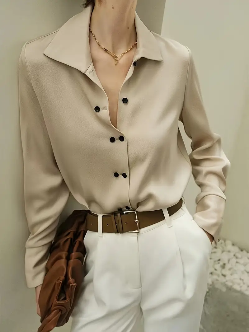 Clean lines, effortless drape, and an air of quiet sophistication—this blouse is designed to elevate your everyday wardrobe with timeless elegance.