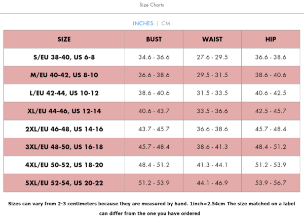 There may be 1-2 cm deviation in different sizes, locations and stretch of fabrics.