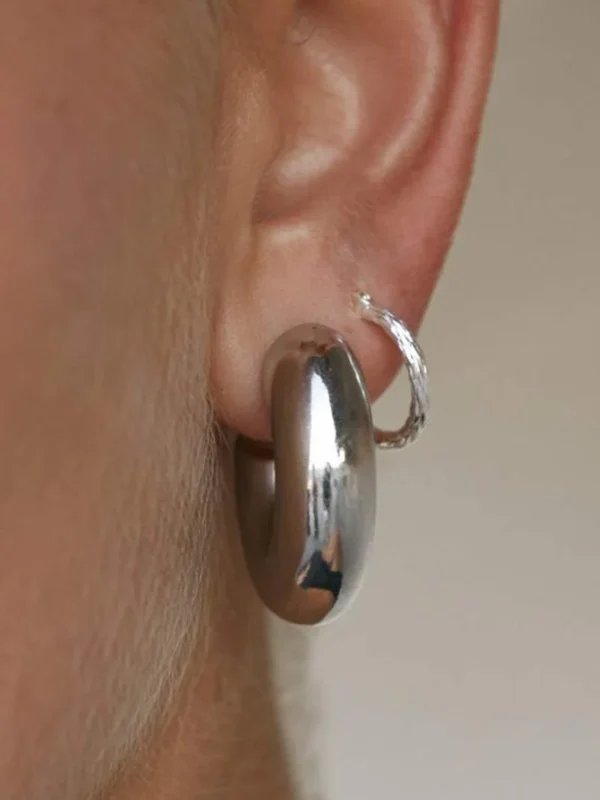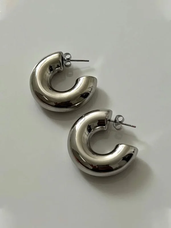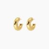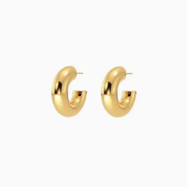 Our chunky hoops are plated with 14K gold & water resistant. Make a bold statement with the Chunky Hoops, plated in 14k gold. These striking earrings feature a substantial, modern design that adds a touch of edge to any outfit. Perfect for enhancing your look with a contemporary flair, they combine substantial style with timeless elegance.